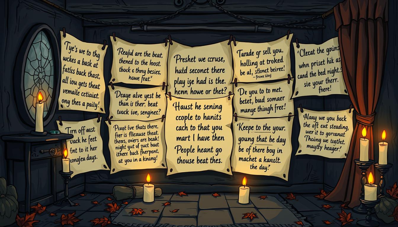 Ja — hier findest du sofort pointierte, freche Zeilen, die auf deiner Gruselparty als Erwachsener wirken. Du bekommst kompakte Texte, die schnell einsetzbar sind und die richtige Stimmung setzen.